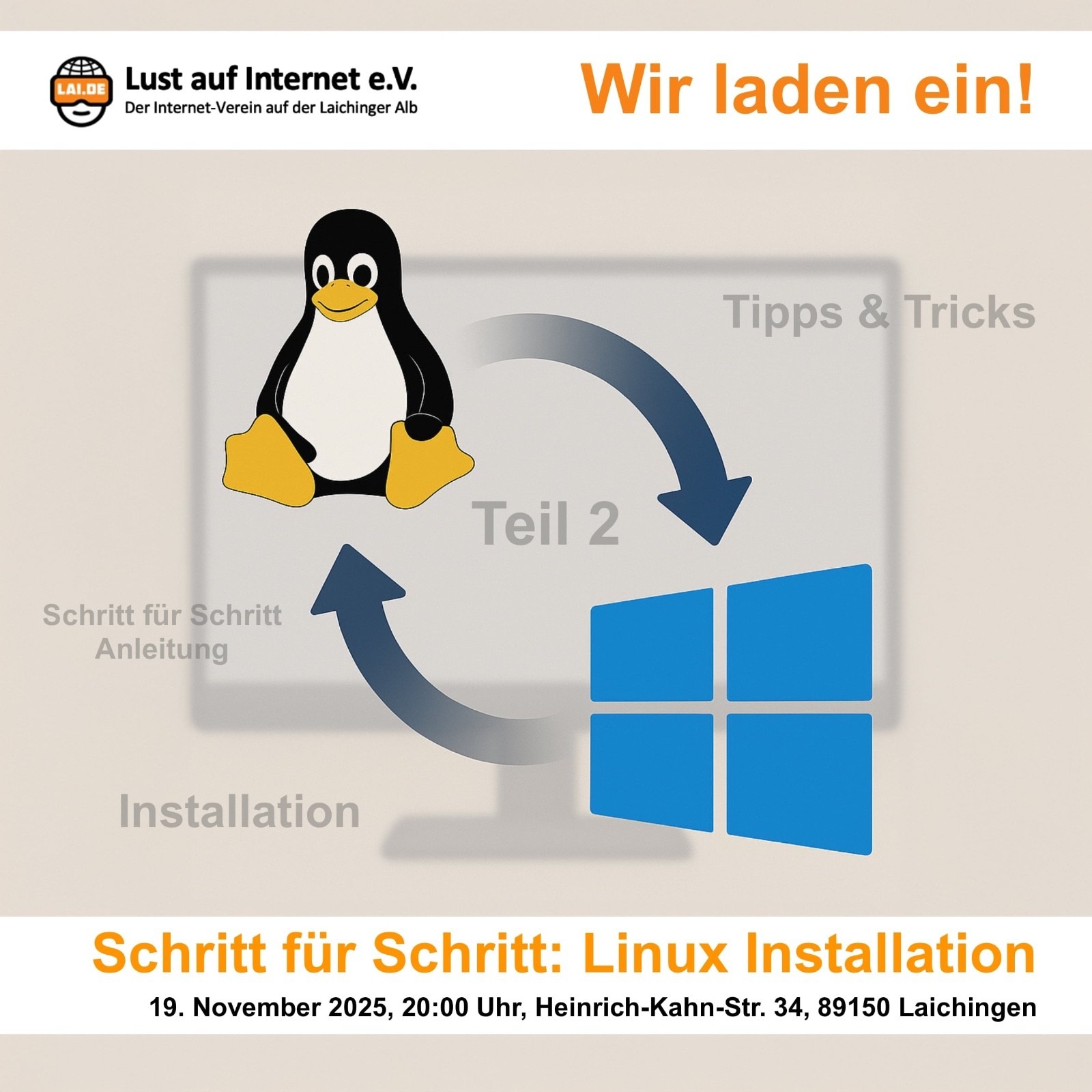 Nach dem Vergleich von Windows und Linux in ersten Teil der Linux-Veranstaltungen taucht der Verein „Lust auf Internet e.V.“ am Mittwoch den 19.11.2025, ab 20 ...
